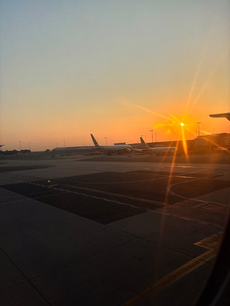 The sun was setting as my plane stood on the runway. It was huge and orange.