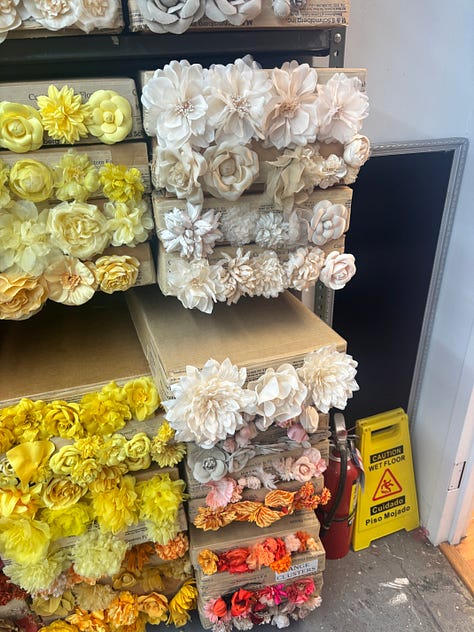 I wanted to write about it all, to pause and remember and savour it. My walks through Manhattan. Catching the New York Philharmonic by chance in Prospect Park; lying on the grass reading as the music played – my feet cold and my stomach full of dosa. The fabric flower factory I visited; the boxes of hand-sewn, hand-dyed flowers that made me feel five-years-old. I was there for over two hours, diving into box after box, finding the perfect roses and peonies and gardenias, satin, taffeta, organza. Why couldn’t I sew? Why didn’t I go into textiles? Or even just something more visual, perhaps I’m not a writer.